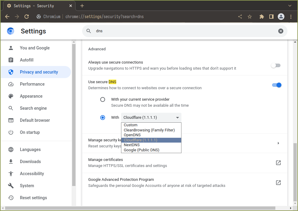 Kedua, sudah luas supportnya dibandingkan dengan encrypted transport protocol lainnya. DoH dikembangkan di 2018 dan browser-browser sekarang sudah ada built-in feature DoH ini.